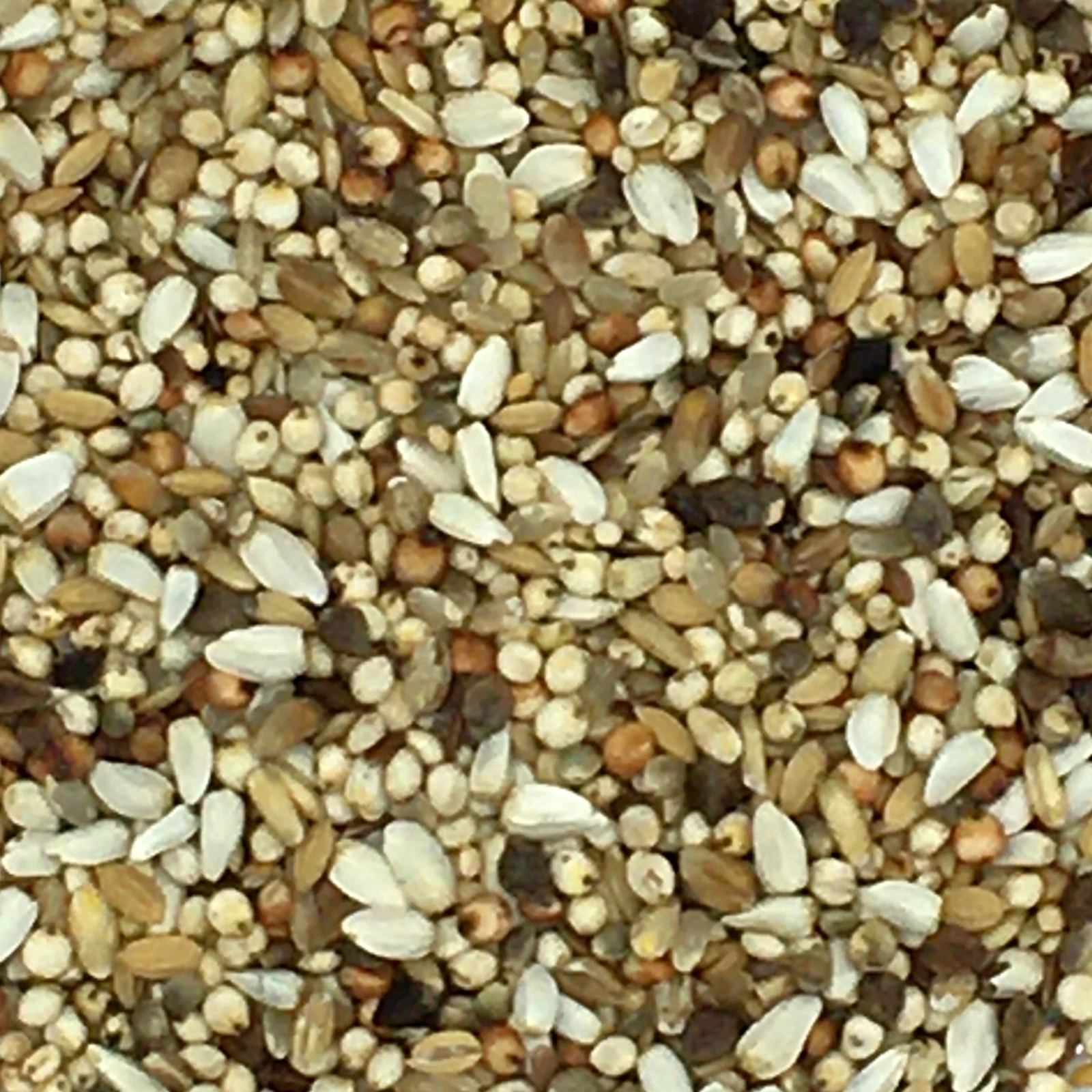 Weiβer Dari 25%, Kardi 17%, roter Sorghum 8%, Buchweizen 5%, geschälte Gerste 5%, geschälter Hafer 5%, Hanf 5%, Kanariensaat 5%, Leinsamen 5%, Naturreis 5%, Paddy-Reis 5%, weiβe Hirse 5%, Weizen 5%